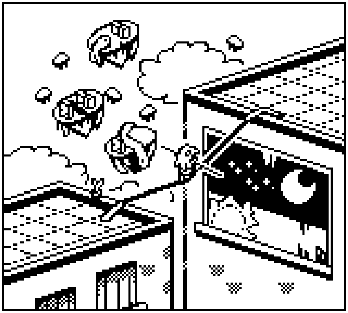 Lovely work! Isometric is definitely a bold choice given the 1-bit limitation, I imagine that was quite challenging to pull off but I think you did a great job.